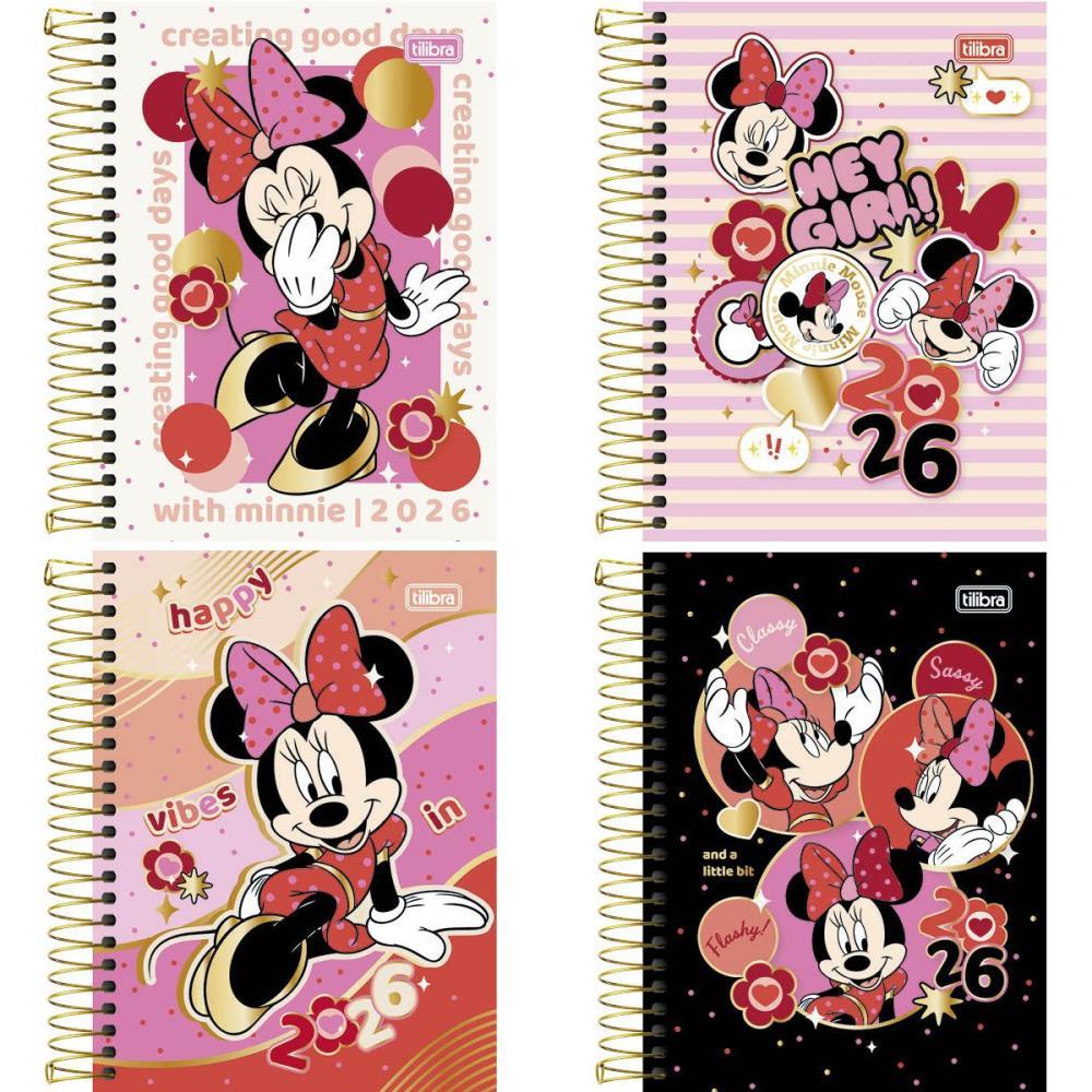 Com visual encantador e detalhes que refletem a essencia da personagem, a agenda Minnie Mouse da Tilibra tem capa dura com hot stamping, bolsa portfolio, adesivos e miolo decorado. Ideal para fas que querem se organizar com estilo e personalidade.