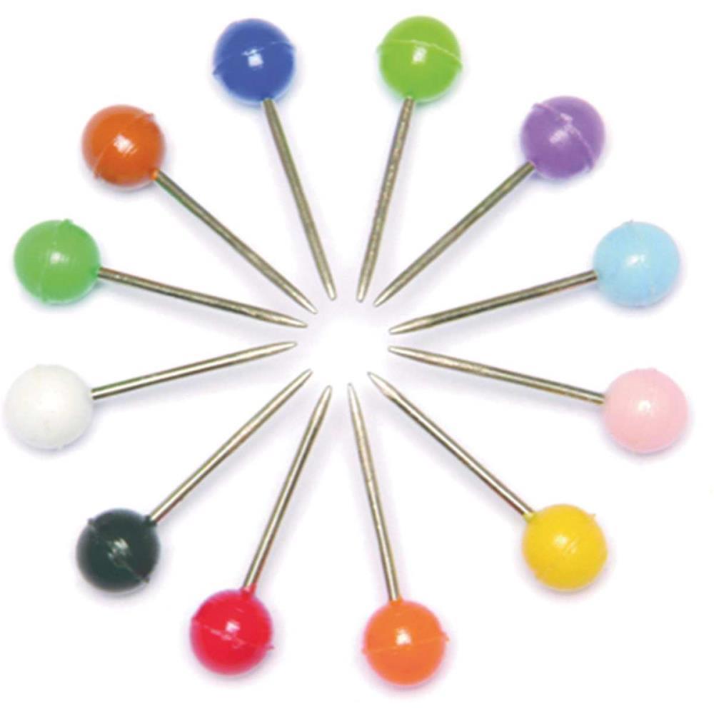 Alfinetes para mapa fabricados em aço niquelado com cabeça plástica colorida com 12 cores. Organize seus mapas e murais de avisos de forma prática criativa.