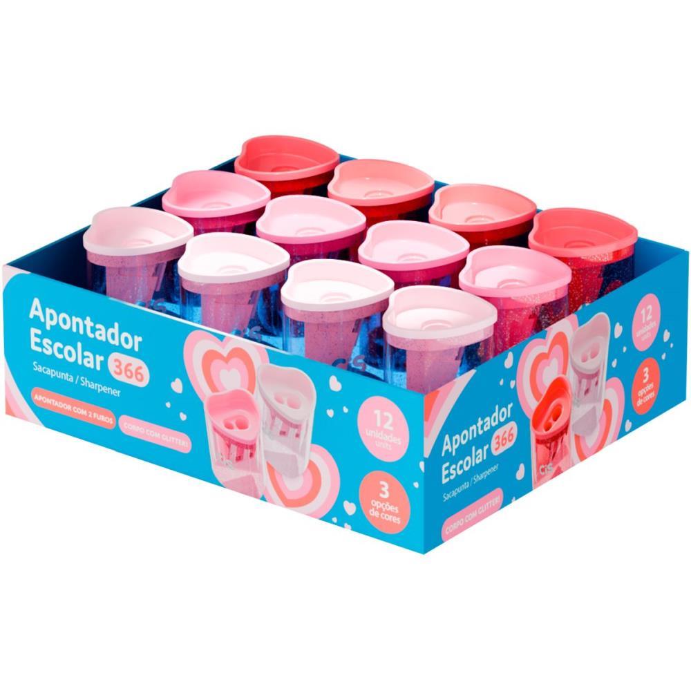 APONTADOR COM DEPOSITO 2 FUROS CIS 366 CORACAO COM GLITTER (S DP.C/12