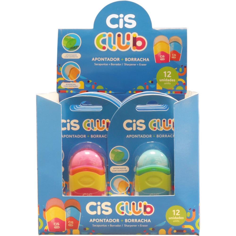Apontador com Deposito CIS CLUB C/BORRACHA Cores SORT DP.C/12