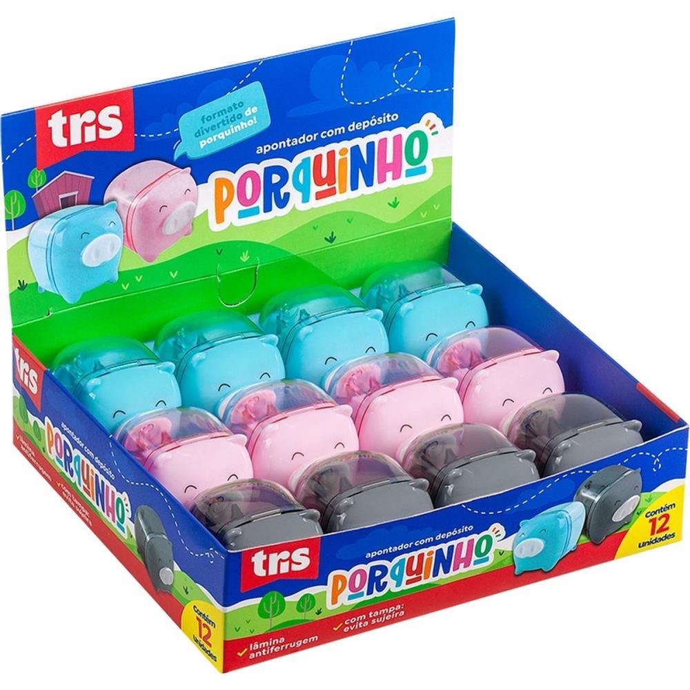 Apontador Com Deposito Tris Porquinho - Cores Sortidas - Display C12 UN