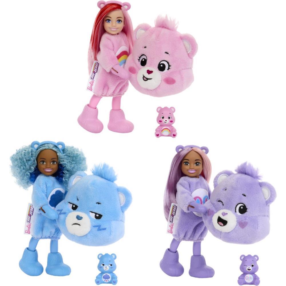 Inclui a pequena boneca Chelsea vestindo a fantasia dos Ursinhos Carinhosos (conjunto de 5 peças) e 3 bolsas contendo um mini animal de estimação, 1 par de sapatos, 1 faixa de cabelo e 1 saia.