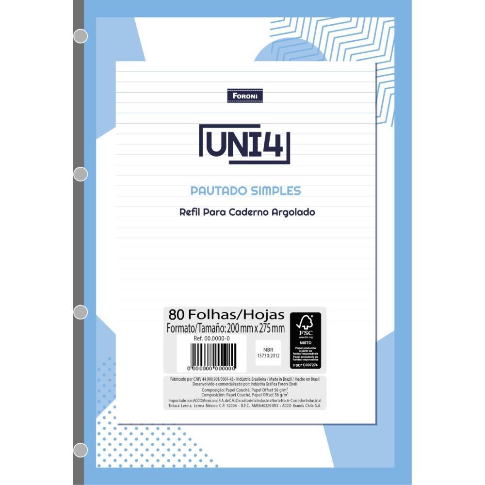 Bloco Para Fichario Universitario Uni 4 Branco 80 Fls. - Foroni