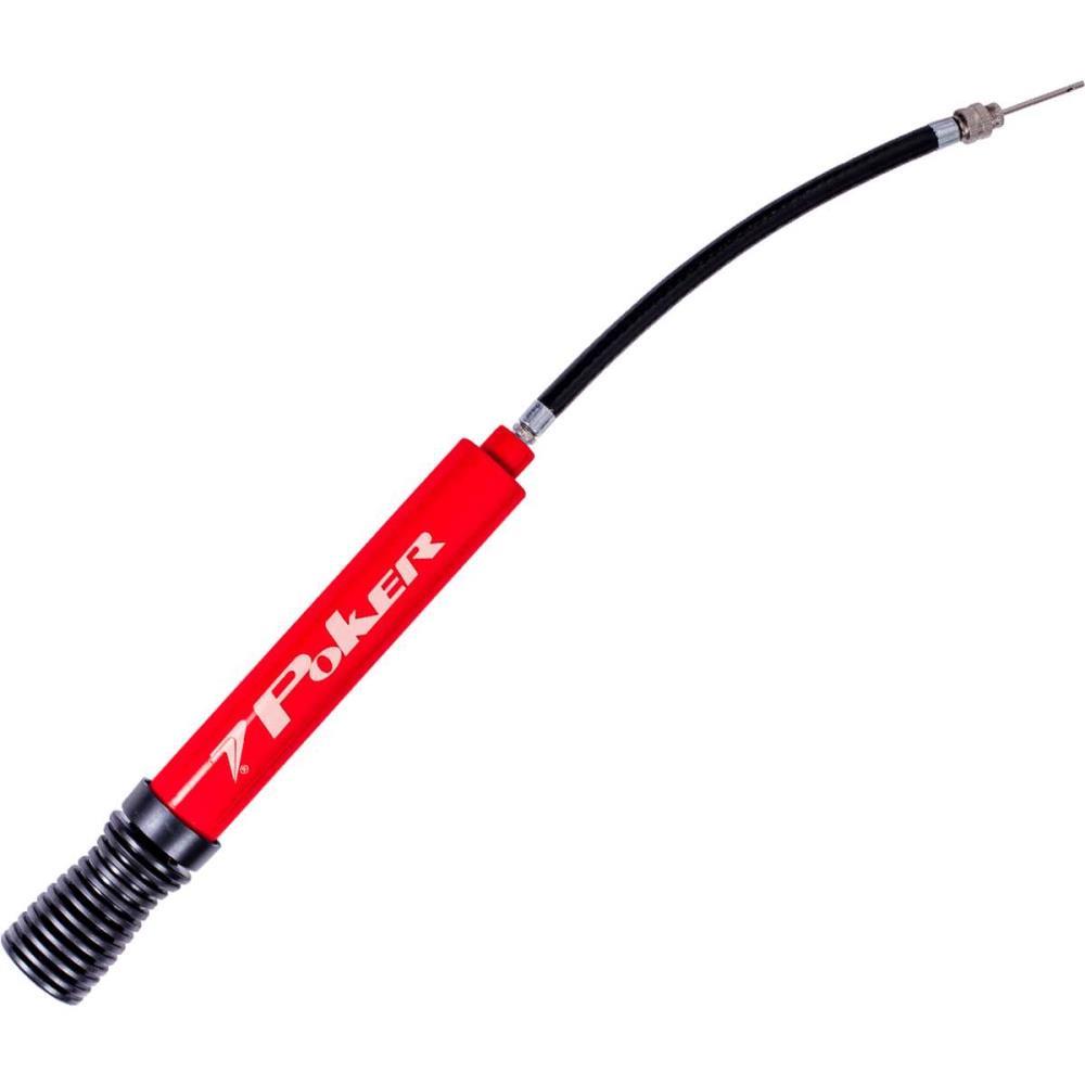 Confeccionado em plastico rigido. Funcao de enchimento nos dois sentidos infla ao empurrar e puxar. Acompanha duas agulhas e um prolongador. Tambem utilizado para encher pneus de bicicleta.