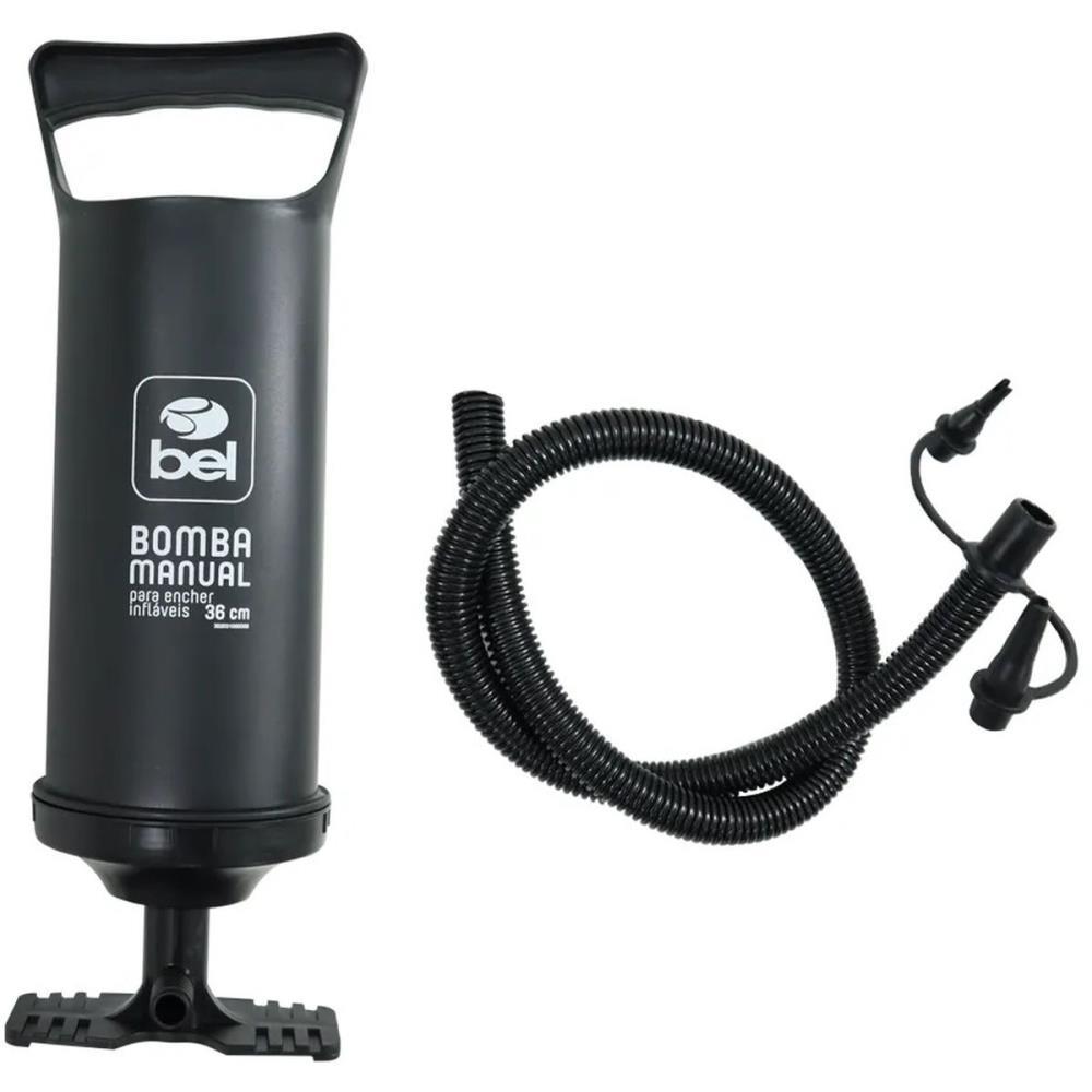 Bomba de ar manual leve, compacta e muito fácil de usar. Utilizada para inflar vários tipos de objetos. Possui 3 adaptadores de válvula para encher piscinas, colchoes e botes. Fabricado em PVC de alta qualidade