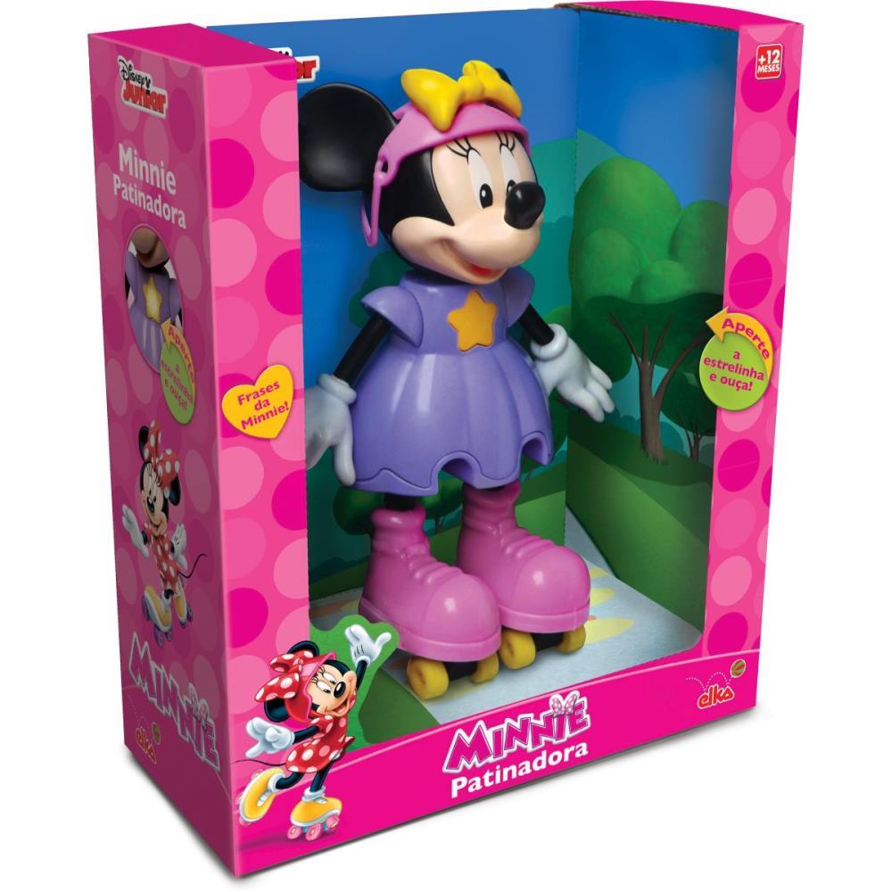 A Minnie adora patinar e passear com o Mickey! Aperte a estrelinha e ela fala frases. A Minnie tem patins e capacete para brincar e se divertir!!