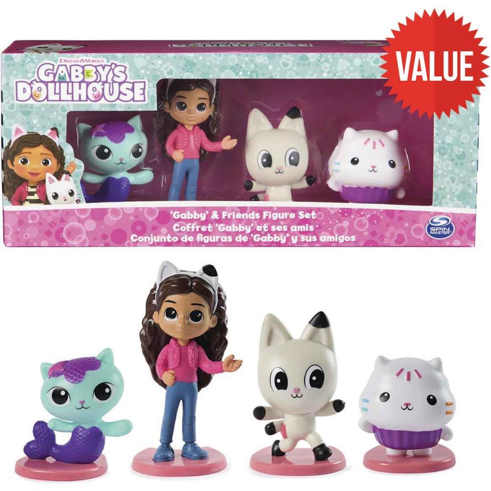 Crie aventuras encantadoras com o pacote de presente da Casa de Bonecas da Gabby, que inclui 4 personagens favoritos do show: Gabby, Mercat, Cakey e Pandy Paws. As figuras tem cores vibrantes, detalhes precisos e bases firmes, ideais para brincar ou exibir. Compactas e faceis de levar, elas estimulam o jogo criativo e permitem recriar cenas do desenho ou inventar novas historias. Perfeito para desenvolver a imaginacao e montar um mundo completo da casa de bonecas!