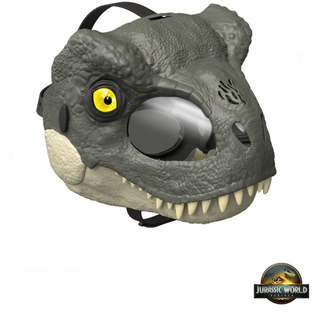 Esta máscara de Tiranossauro Rex certamente emocionará qualquer fã de Jurassic World com sua aparência saída diretamente de Jurassic World Rebirth. Com design autêntico do filme, esta máscara de Tiranossauro Rex é intimidante mesmo em seu estado de "repouso" – com dentes ferozes, olhos piscando e sons suaves de rosnado. Os efeitos dos olhos iluminados aumentam com três níveis de agressividade e rosnados cada vez mais ferozes conforme a mandíbula se abre! É feroz, é mais feroz, cuidado! Esta máscara de RPG iluminará qualquer fã de Jurassic World com 6 anos ou mais. As aberturas para os olhos e a boca facilitam o uso e uma alça ajustável garante um ajuste seguro.