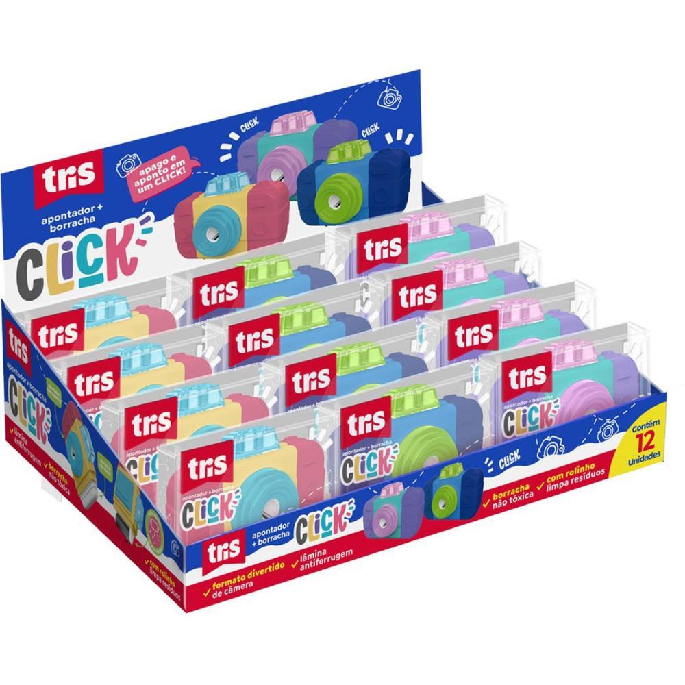 Apontador Com Deposito Com Borracha E Rolinho Tris Click - CoresSortidas - Display C12UN
