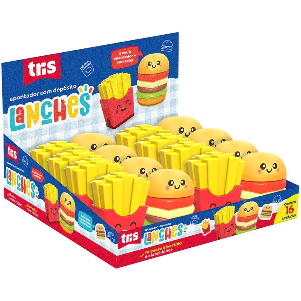 Apontador Com Deposito Com Borracha Tris Lanches - Cores Sortidas -Display C16UN