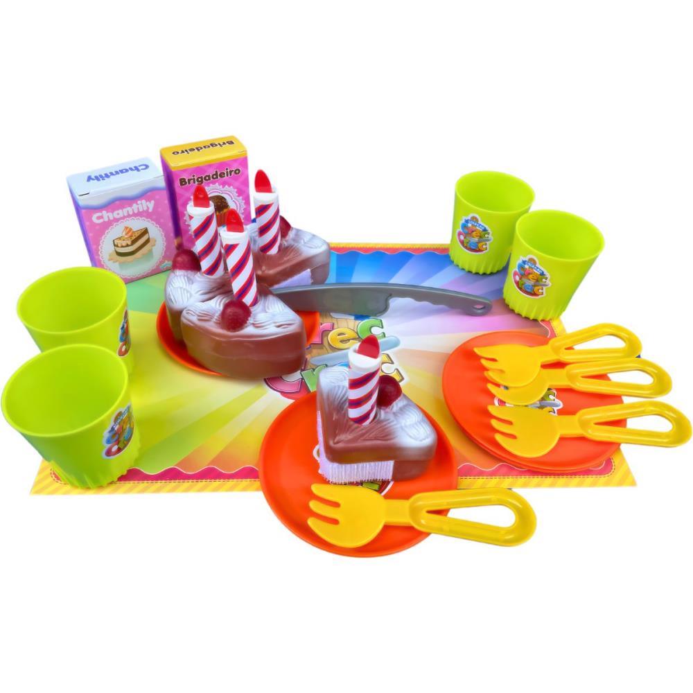 O Kit de Crec-Crec Aniversario vem com muitas pecas para brincar de montar bolos deliciosos e servir. Indicado a partir de 03 anos, o produto inclui 4 fatias de bolo, 4 copinhos, 4 garfinhos, 4 pratinhos, 4 velinhas, 1 faca grande, 1 toalha cartonada , 2 caixas cartonadas para se divertir brincando! Produzido com materiais adequados a crianca e aprovadocertificado pelo Inmetro.