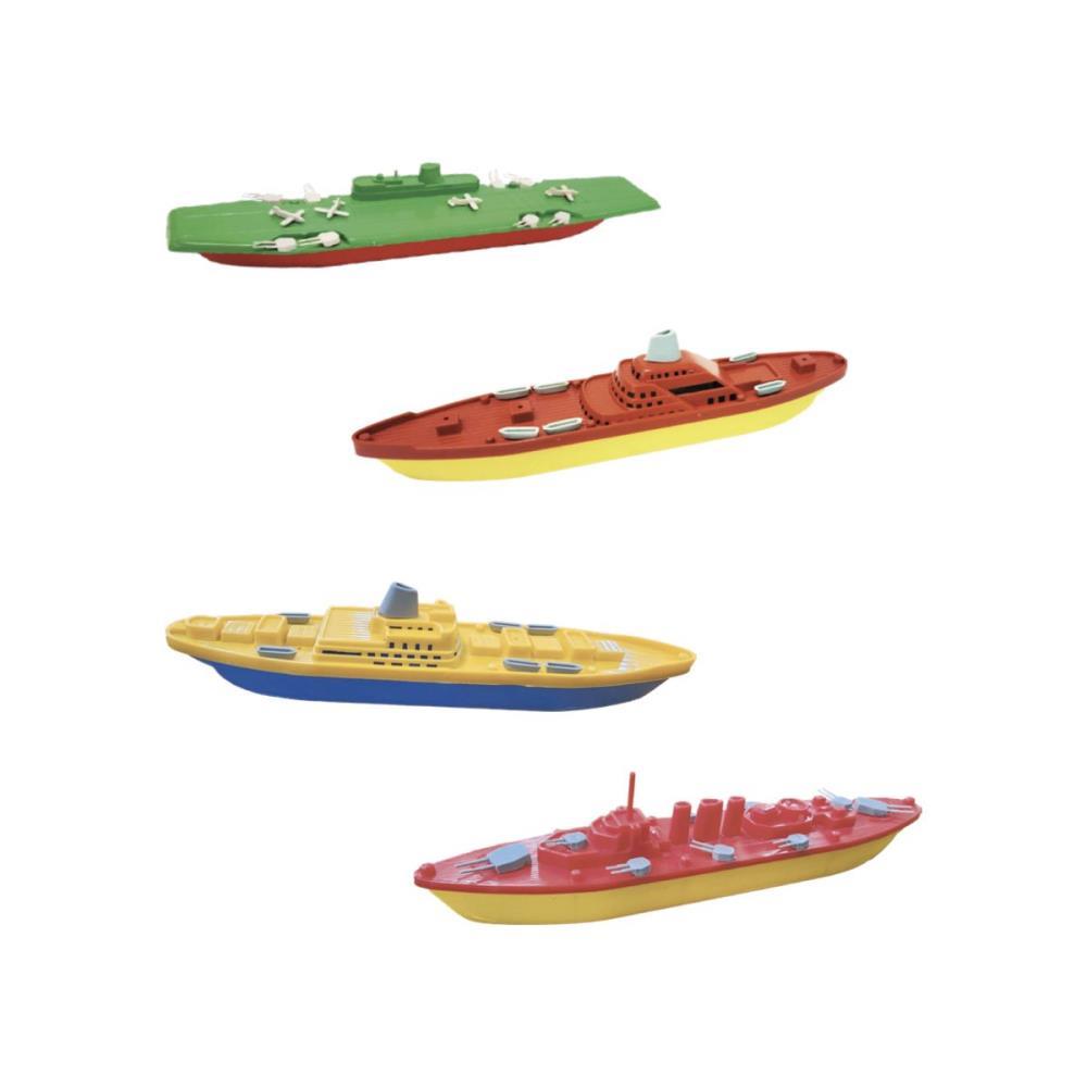 O NAVIO FROTA NAVAL POSSUI 4 MODELOS COLORIDOS E SORTIDOS: TORPEDEIRO, TRANSATLANTICO, CARGA E PORTA AVIAO.