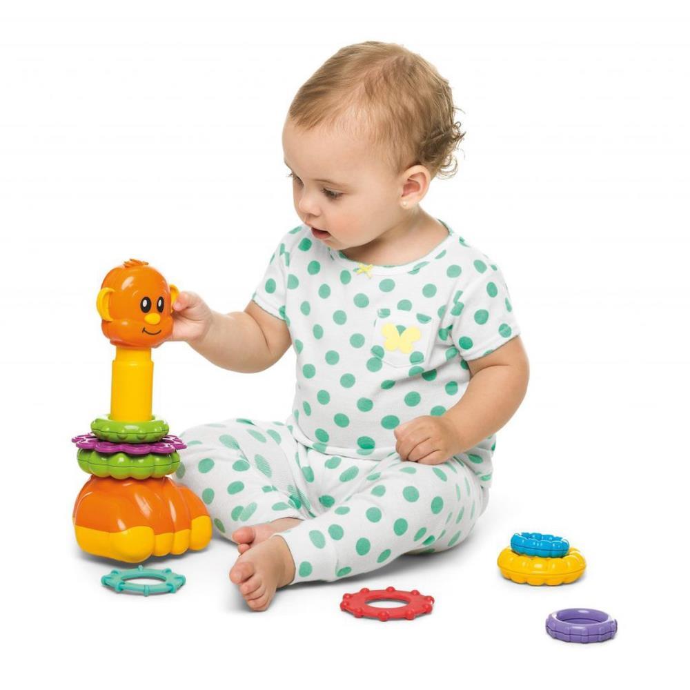 O Zoo Argolas vem com oito argolas coloridas em cores vivas e vibrantes, cada argola pode ser montada conforme os tamanhos, ajudando o bebê na coordenação motora. Além de divertir, ensina o encaixe das argolas. Seu bebê pode brincar com as argolas finas emborrachadas, usando como mordedor para auxiliar ao seu bebê no momento dos primeiros dentinhos. O Zoo argolas fica ainda mais divertindo trocando as cabeças dos bichinhos, é divertido como um passeio no zoológico.
