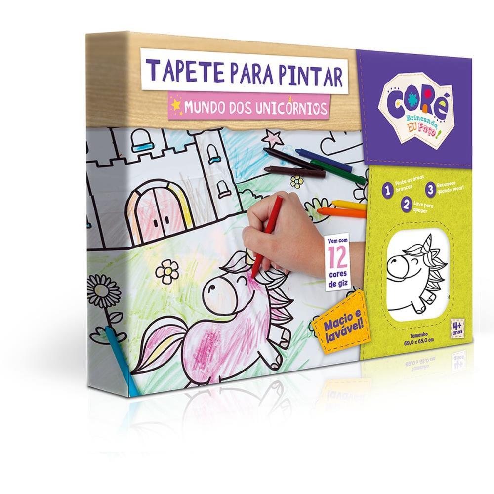 Um super tapete para pintar. Ele e lavável e pode ser colorido diversas vezes! As crianças vão se divertir enquanto usam a criatividade e pintam os unicórnios!