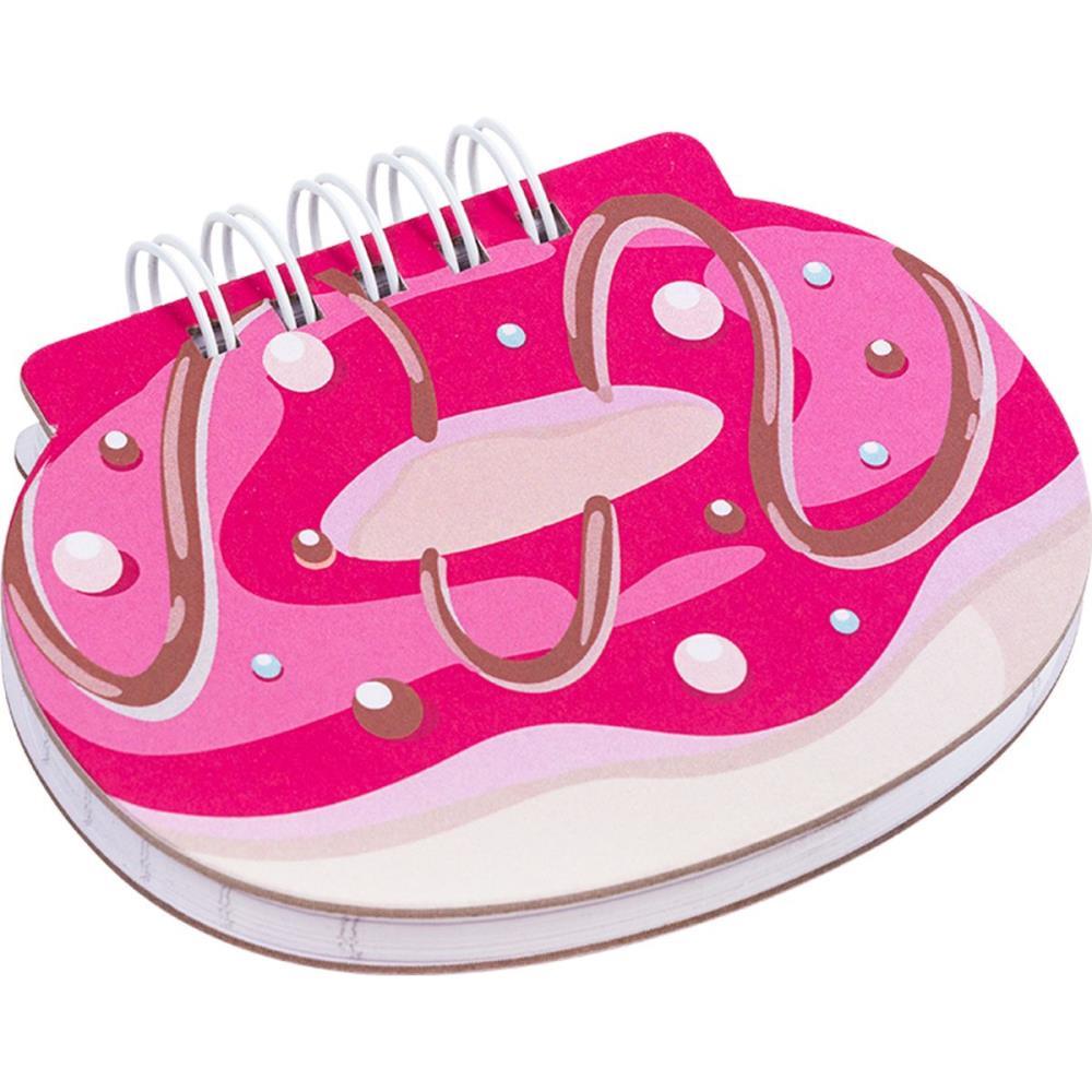 CADERNETA TUTTI FRUTTI TAMANHO 100X150MM, FORMATO ESPECIAL DE DONUTS, UM DELICIOSO PRODUTO COM 80 FOLHAS PAUTADAS E 75GM, ESPIRAL TINGIDO. UNIDADE DE VENDA, PACOTE COM 04 UNIDADES SORTIDAS EM ESTAMPAS DIFERENTES. PRODUTO COMPACTO, EXCELENTE PARA BOLSA, PORTA LUVAS DE VEICULOS E PEQUENAS GAVETAS.
