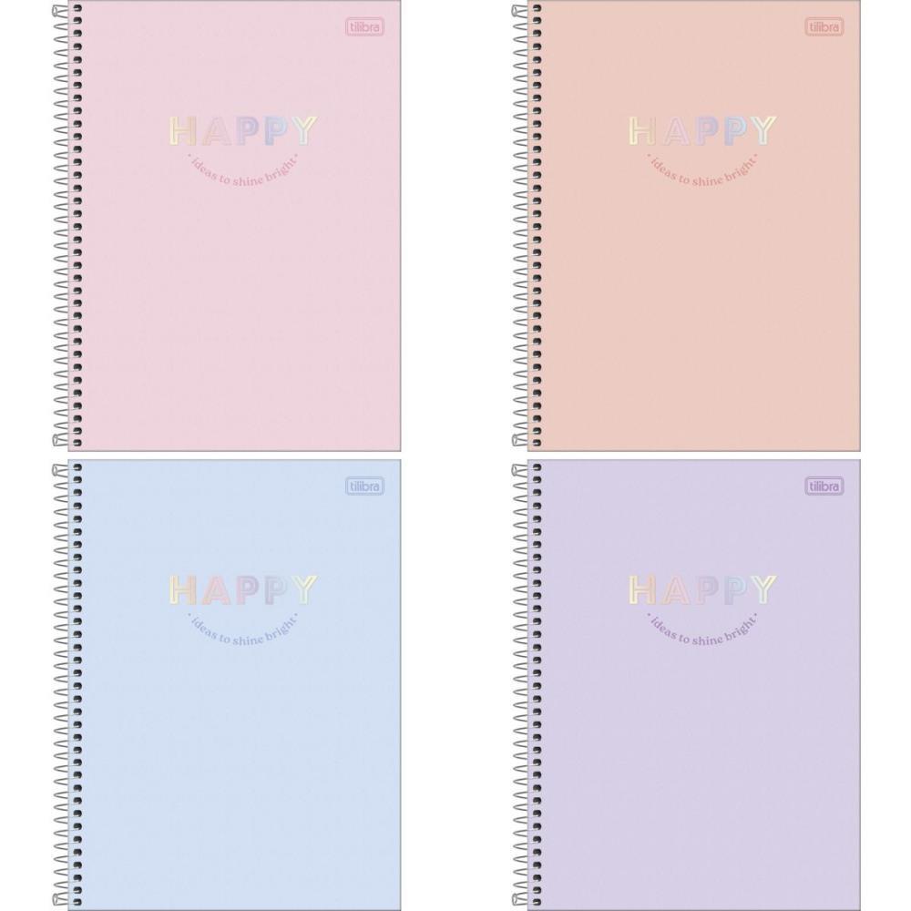 O Caderno Espiral Capa Dura Universitario 1 Materia Happy 80 Folhas possui capa dura com a parte interna decorada, bolsa plastica para guardar trabalhos e anotacoes, folha com adesivos funcionais, folhas pautadas decoradas e espiral colorido. Ideal para o dia a dia na escola ou na faculdade.