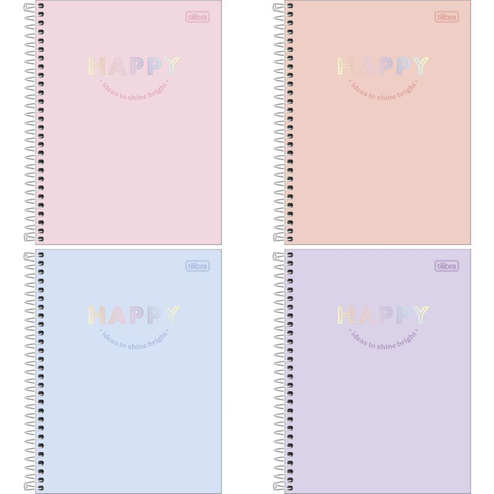 O Caderno Espiral Capa Dura Colegial 10 Materias Happy 160 Folhas possui formato inovador e compacto, ideal para quem gosta de praticidade. Possui 160 folhas divididas em 10 materias, capa dura com detalhe metalizado, parte interna decorada, bolsa de papel decorada, folha com adesivos funcionais e folhas pautadas decoradas destacaveis.