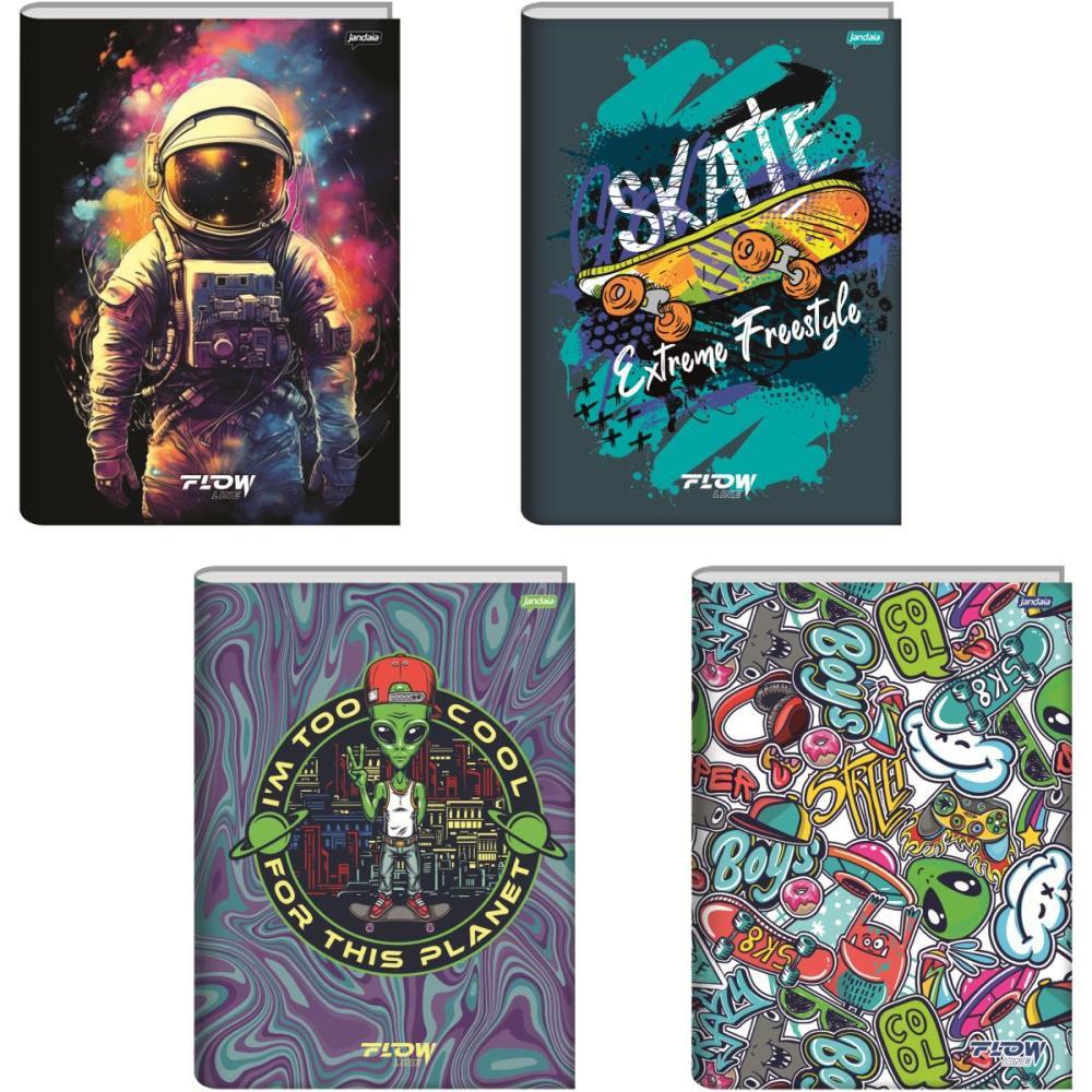 A Linha Flow e uma colecao versatil, composta por quatro capas com estampas e designs variados, atendendo a diversos gostos e estilos. Essa linha se destaca por oferecer uma quantidade maior de folhas. Com acabamento em laminacao brilho, garantem cores intensas e maior durabilidade.