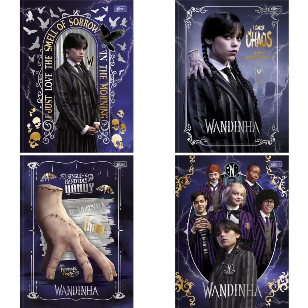 O Caderno Brochura Capa Dura Wandinha 80 Folhas possui capa dura com a parte interna decorada, folha de adesivos e folhas pautadas. Com a lombada quadrada e acabamento diferenciado que garante maior resistencia ao produto, e ideal para o dia a dia na escola.