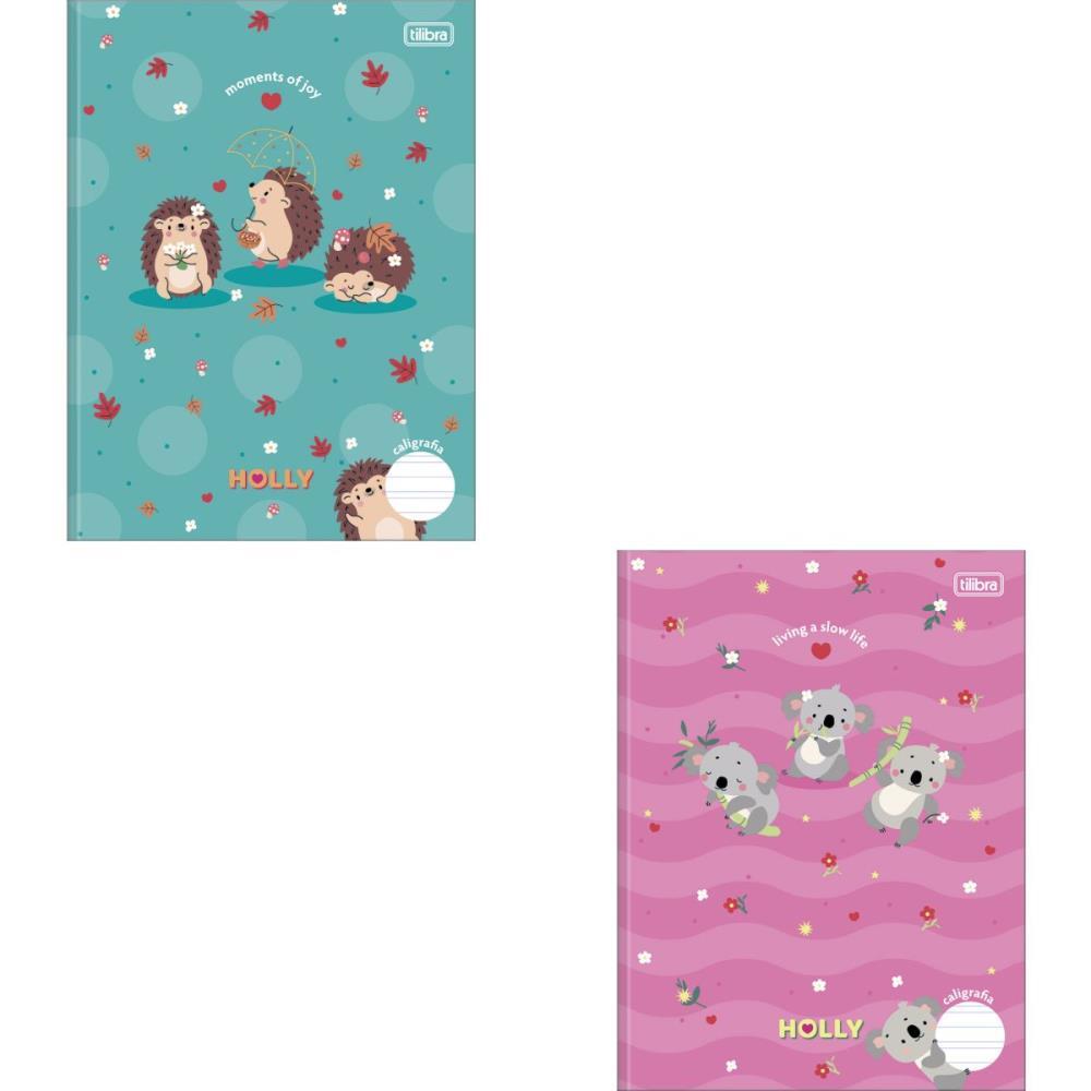 O Caderno de Caligrafia Brochura Capa Dura Holly 40 Folhas da Tilibra une aprendizado e diversao, com capa dura, parte interna decorada, folhas pautadas para treino de caligrafia e adesivos, ideal para desenvolver escrita e coordenacao motora.