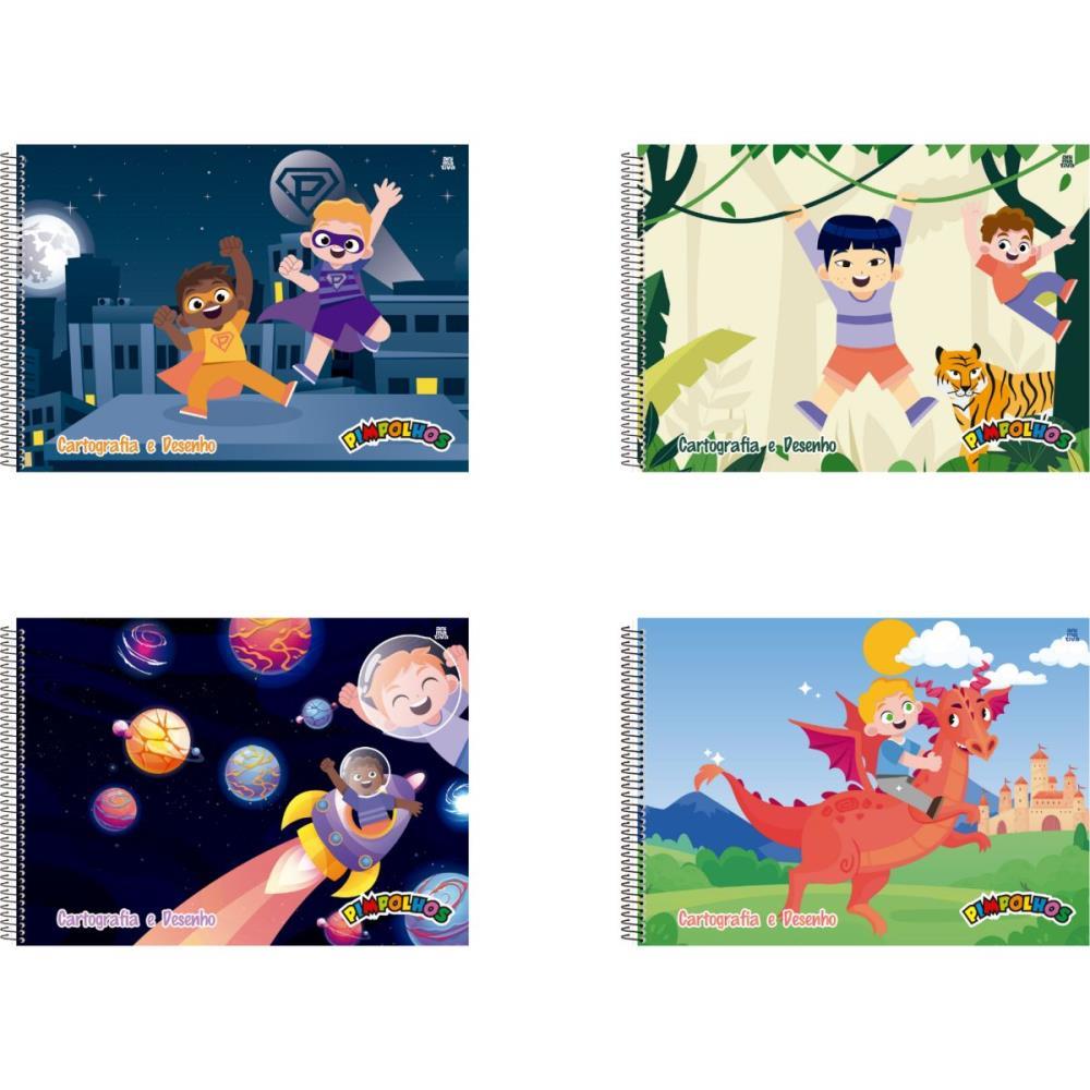 Caderno de Desenho Capa Dura Espiral Pimpolhos Masculino- Miolo 56g