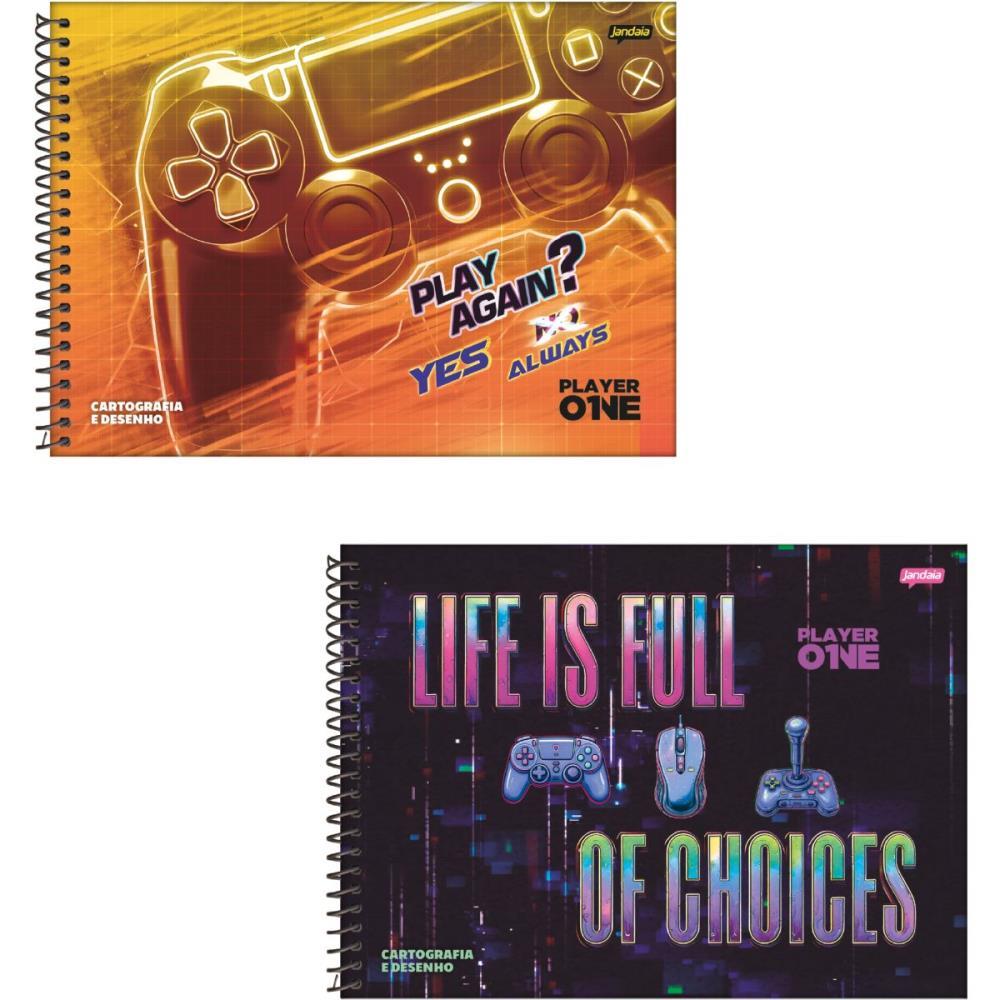 Caderno Espiral Cartografia Capa Dura Player 1, 80 Folhas, 2 Modelos De Capa, Com Encarte Para Brincar