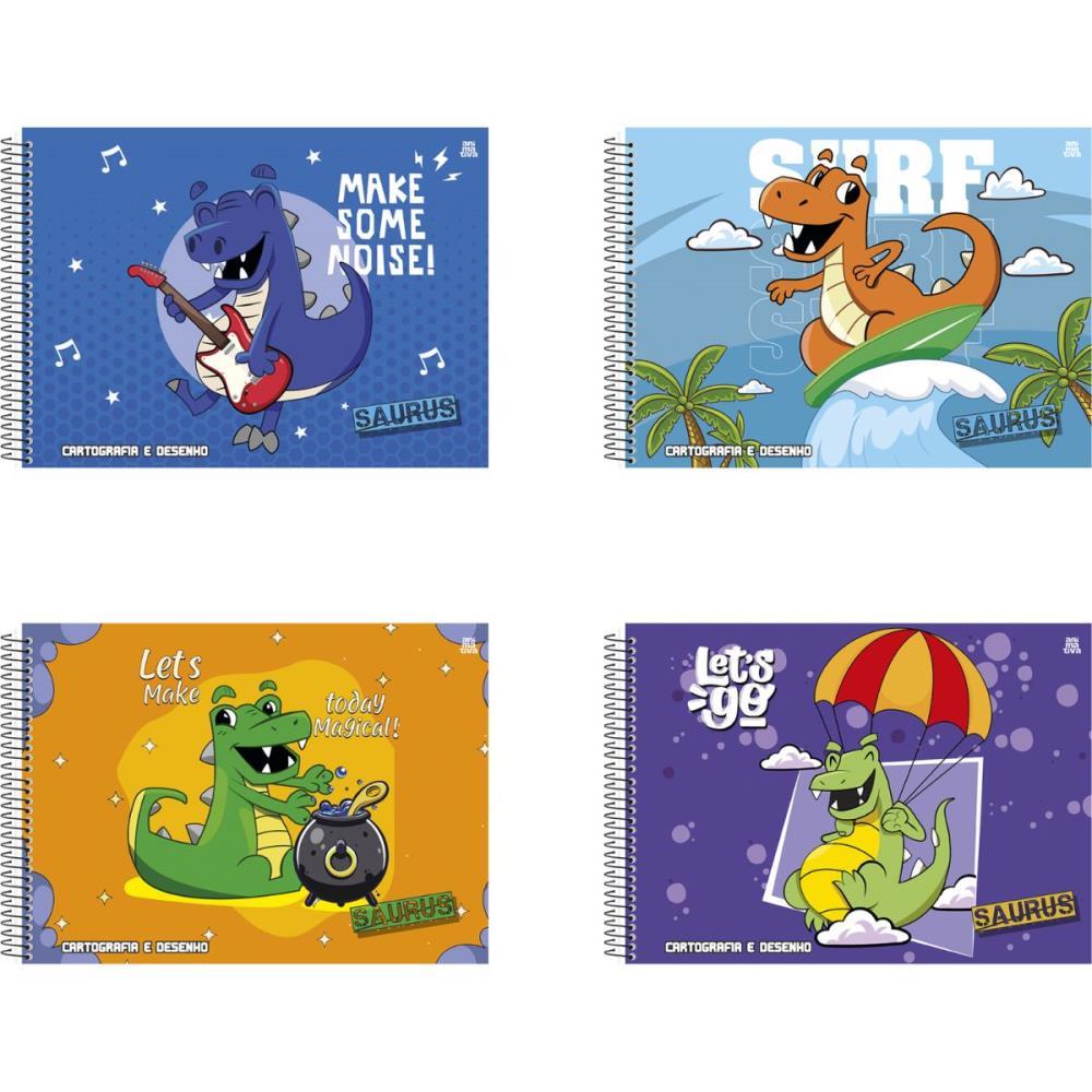 Caderno de Desenho Capa Dura Espiral Saurus - Miolo 63g