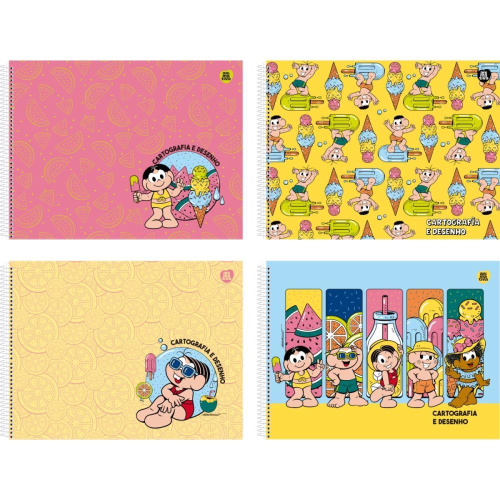 Caderno de Desenho Capa Dura Espiral Turma da Monica - Miolo 63g