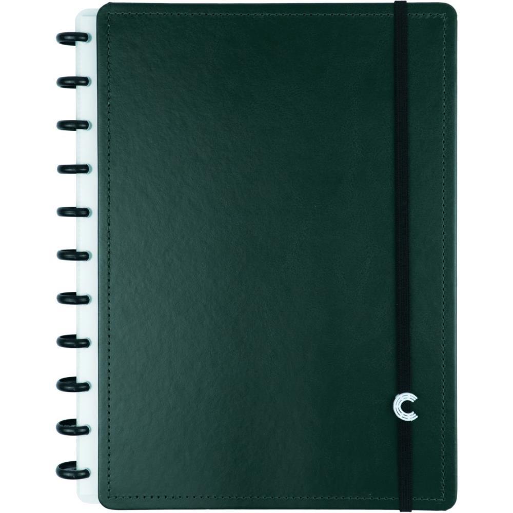 Capa e contracapa rigidas, 01 bolsa plastica, 01 folha de instrucao de uso e manuseio, com refis e acessorios da marca disponiveis no verso, 01 folha de identificacao com calendario no verso, 04 divisorias com abas para identificacao 02 pretas e 02 transparentes, 80 folhas offset 90g 60 folhas pautadas e 20 folhas lisas brancas para impressao, 01 suporte com elastico para 01 caneta ou 01 lapis e discos M + elastico e uma folha de Etiquetas Adesivas.