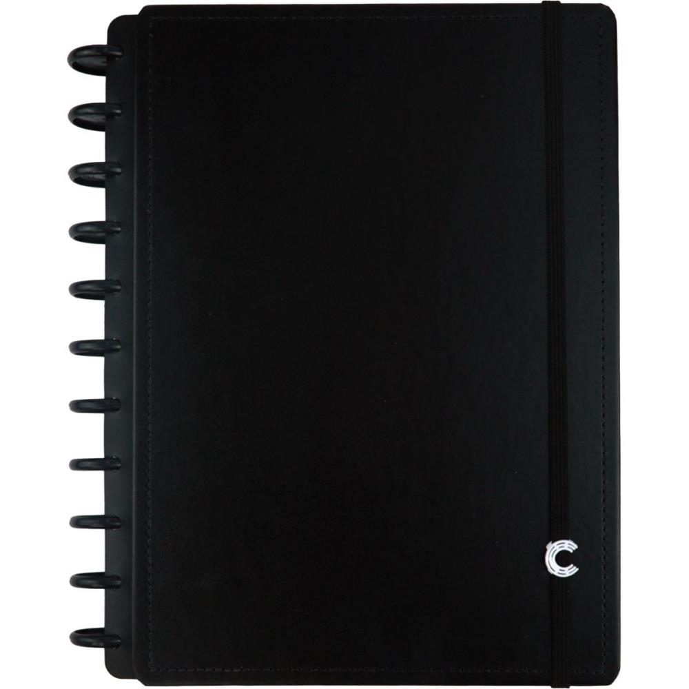 O Caderno Completo contem: - Capa e contracapa rigidas, 01 bolsa plastica, 01 folha de instrucao de uso e manuseio, com refis e acessorios da marca disponiveis no verso, 01 folha de identificacao com calendario no verso, 04 divisorias com abas para identificacao 02 pretas e 02 transparentes, 140 folhas 90g 120 folhas pautadas e 20 folhas lisas brancas para impressao, 01 suporte com elastico para 01 caneta ou 01 lapis, discos G + elastico e forro branco.
