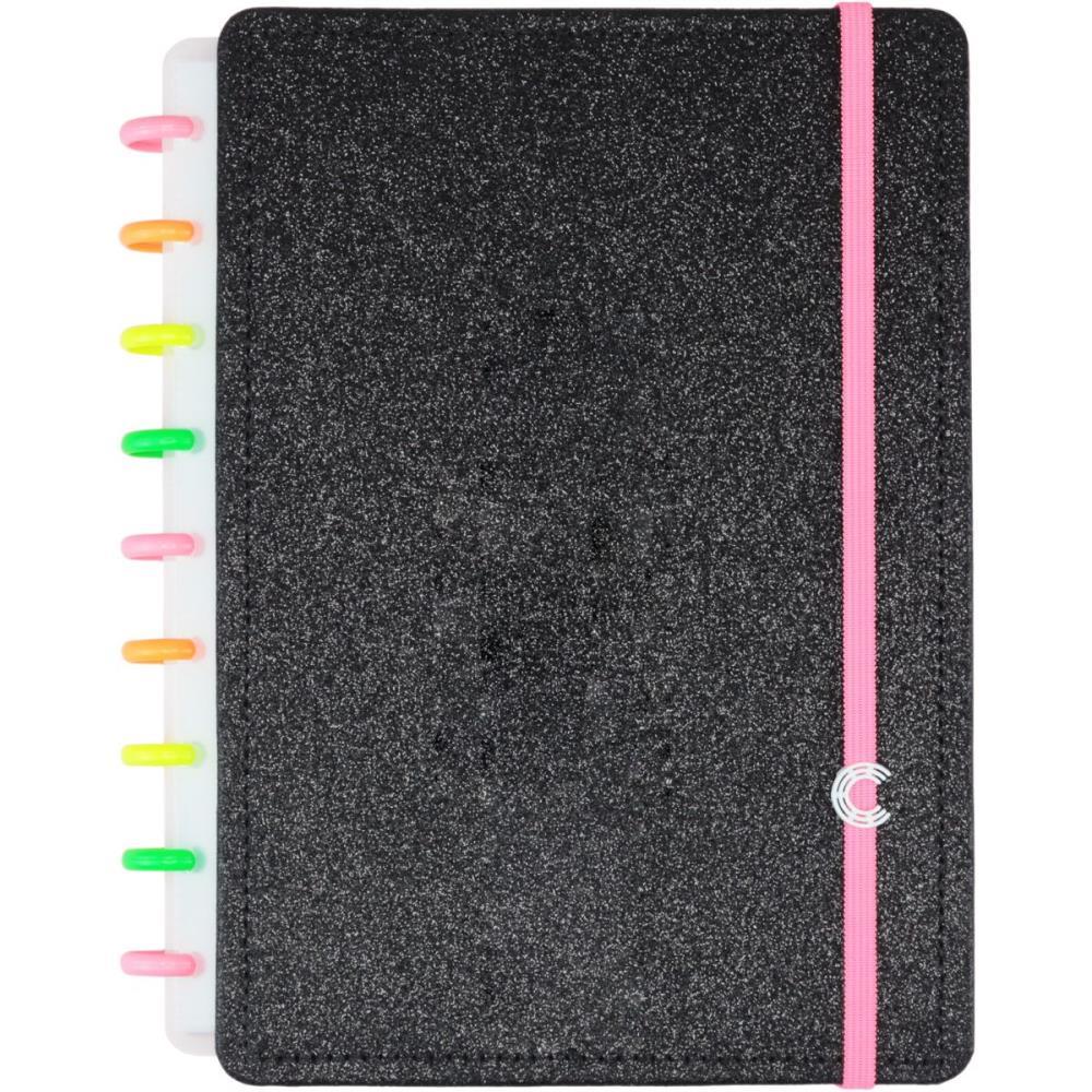 Um verdadeiro show de cores, brilho e glamour no Caderno Let’s Glitter Neon Black