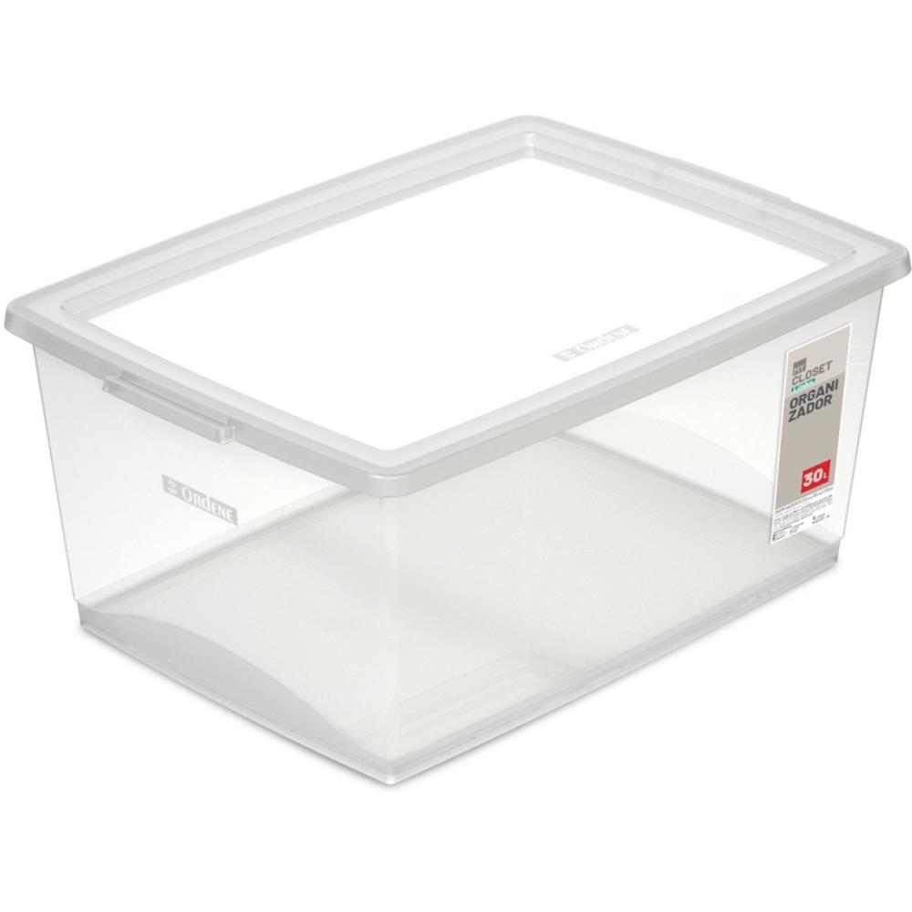 CAIXA ORGANIZADORA PLASTICA DE 30L, COR CRISTAL, LINHA MY CLOSET, ORDENE.