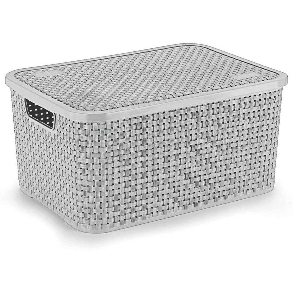 Caixa Plastica Multiuso Rattan Com Tampa G 16 L Cinza