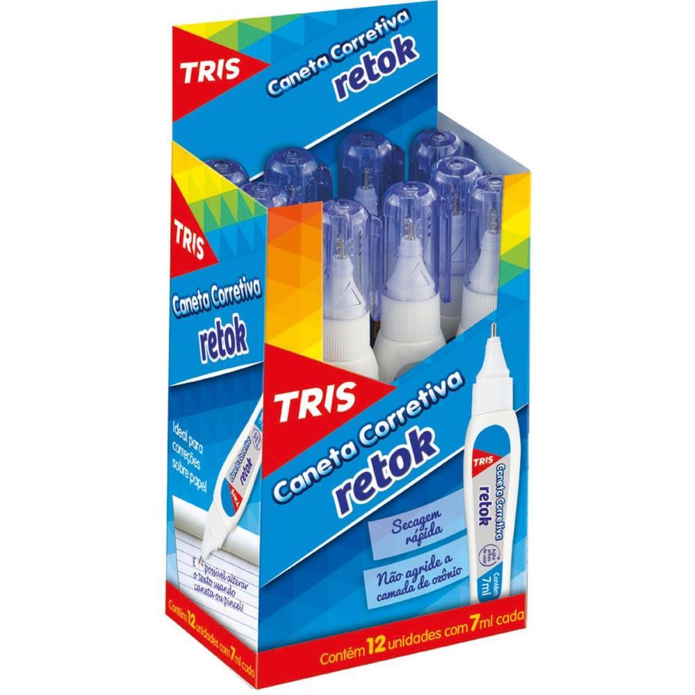 TRIS RetokCaneta CorretivaSecagem rápida.Ideal para correções sobre papel.Ponta metálica para maior precisão.Conteúdo: 7ml por unidade.Múltiplo de Venda: Display c/12un.Caixa Master: 48un. vda.