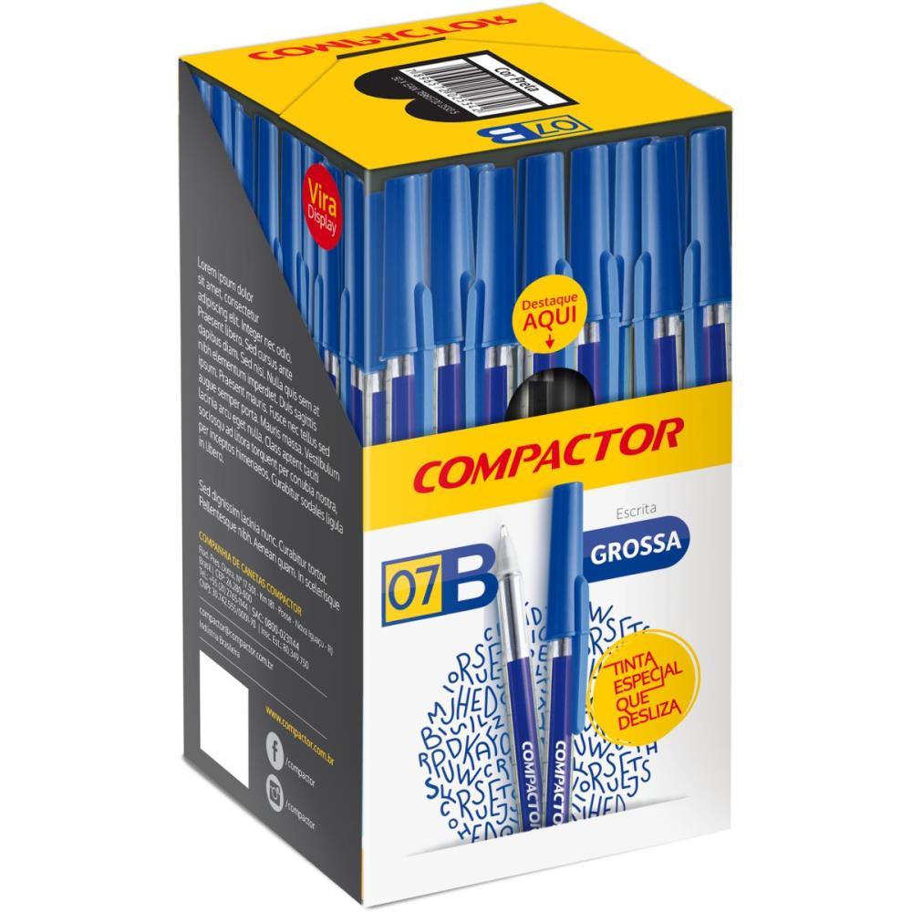 A Caneta Esferográfica 07B - 12 mm. Possue escrita fina ou média e macia. Corpo sextavado evita que role na mesa facilmente e sua pega arredondada proporciona uma escrita mais confortável até a última gota. Seu corpo translúcidos possibilitam a visua lização do consumo de tinta, mas não se preocupe, cada 07 Compactor escreve até 5 kilômetros sem falhar.
