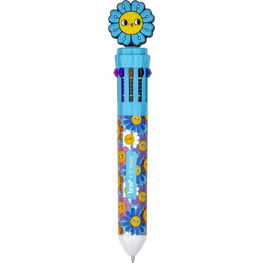 CANETA DIVERTIDA, OPCAO DE BRINQUEDO E PRESENTE. CANETA ESFEROGRAFICA 10 CORES, SENDO: AMARELO, AZUL CLARO, AZUL ESCURO, LARANJA, MARROM, PRETO, ROSA, ROXO, VERDE E VERMELHO. 2 PONTEIRAS FORMATO DE FLOR. CORPO ESTAMPADO COM EFEITO HOLOGRAFICO E SINERGICO COM AS PONTEIRAS.