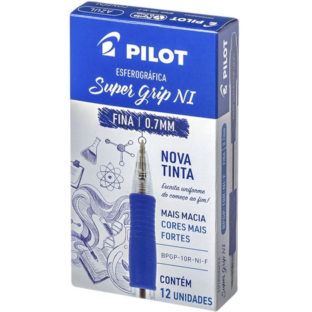 Caneta esferográfica Pilot Super Grip 0.7mm Retrátil, com corpo arredondado e grip em borracha anatômica.