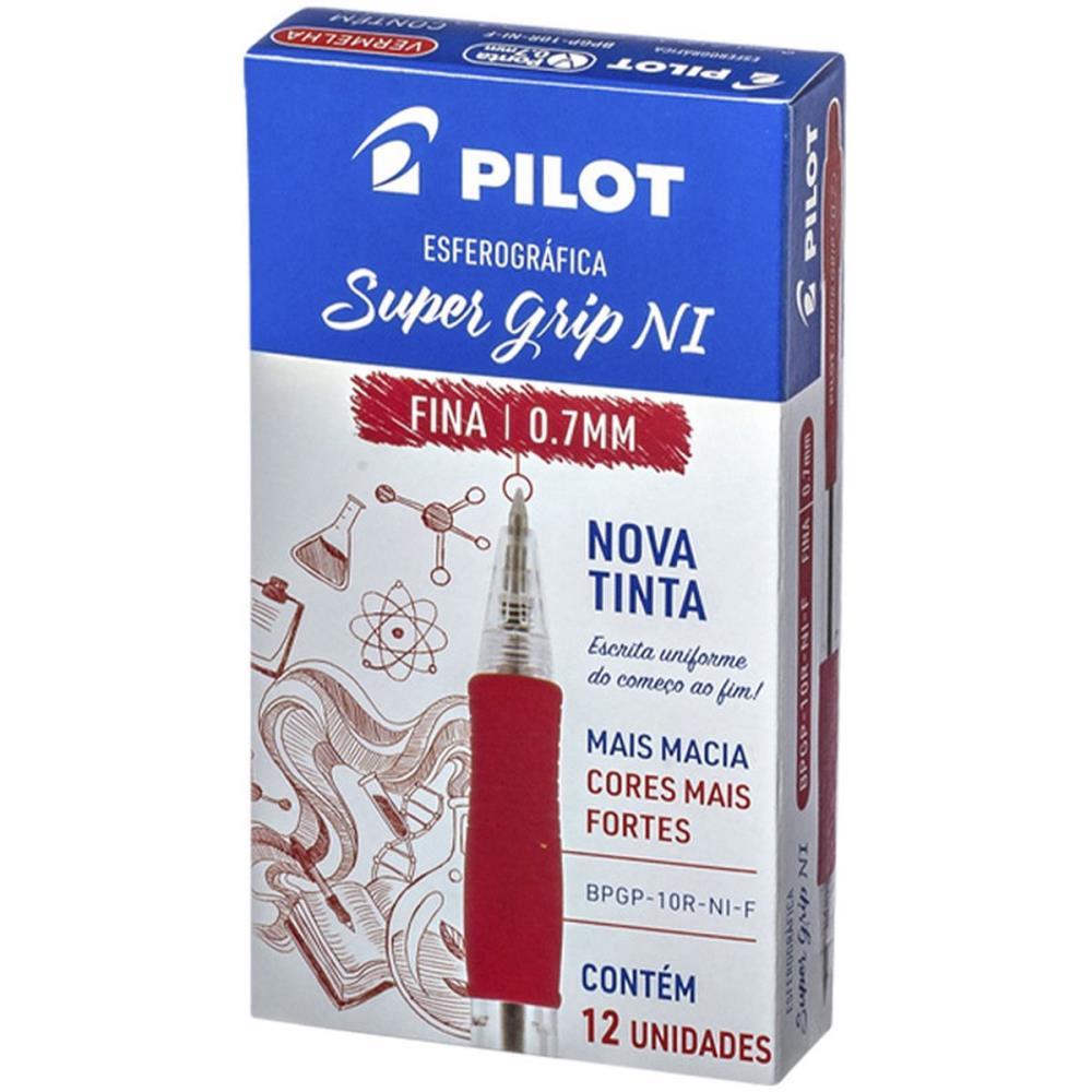Caneta esferográfica Pilot Super Grip 0.7mm Retrátil, com corpo arredondado e grip em borracha anatômica.