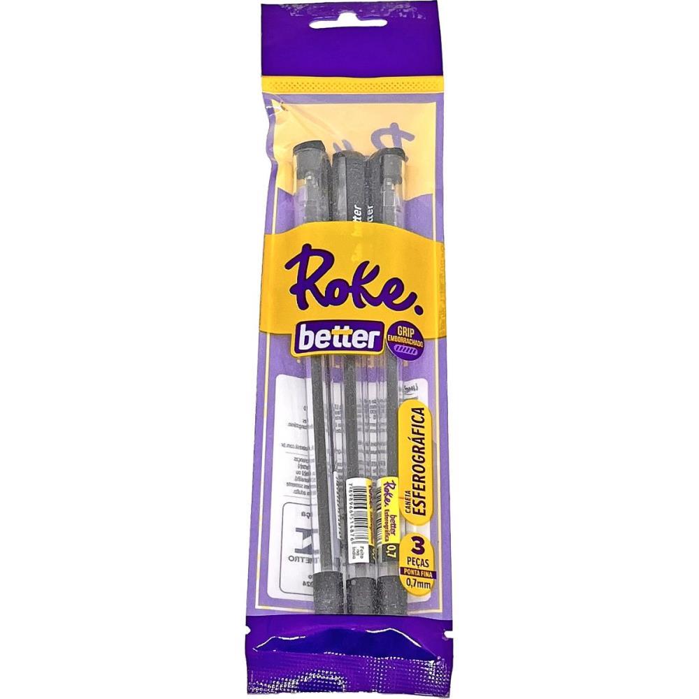 - Contem 3 canetas esferograficas Roke Better, ponta 0.7mm, Cor: Preto.