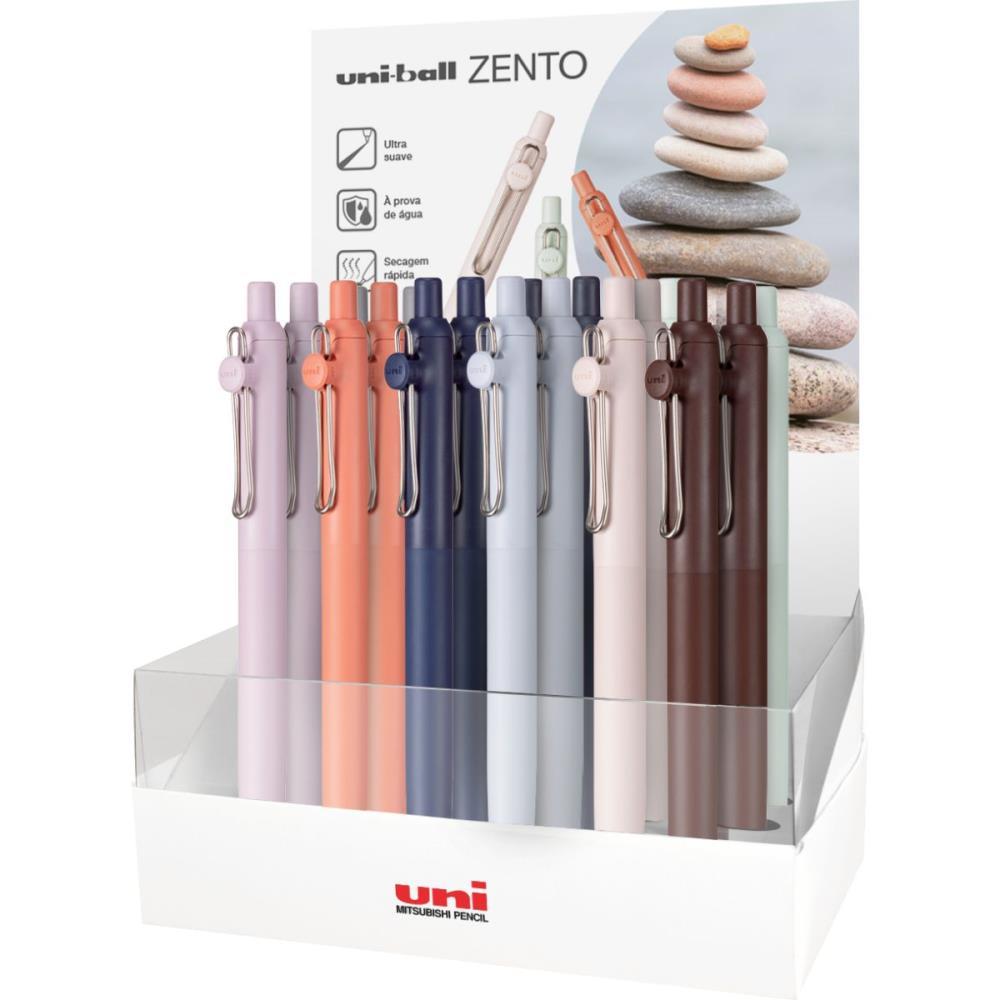 Caracteristicas do produto. • Design moderno minimalista. • Corpo redondo. • Material de plastico 75% reciclado. • Tinta ZENTO, com alta tecnologia. Resistente a agua e livre de borroes. • Clip metalico.