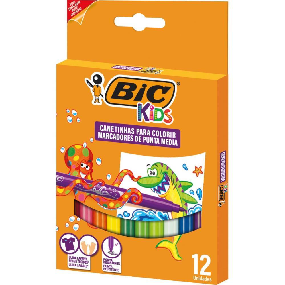 As Canetinhas Hidrograficas BIC da linha Kids possuem tinta ultra lavavel e vem em um estojo com 12 cores. Possui ponta media super resistente que nao afunda quando pressionada. As Canetinhas sao imprescindiveis para o material escolar, garantindo qualidade e durabilidade. Sua tinta e ultra lavavel, tanto na pele quanto nos tecidos, e dura muito mais. Com a linha de materiais da BIC voce garante toda a qualidade necessaria para realizar suas tarefas diarias e seus trabalhos impecaveis. • Tinta ultra lavavel; • Facil de apontar; • As imagens podem ser ilustrativas; • Qualidade BIC.