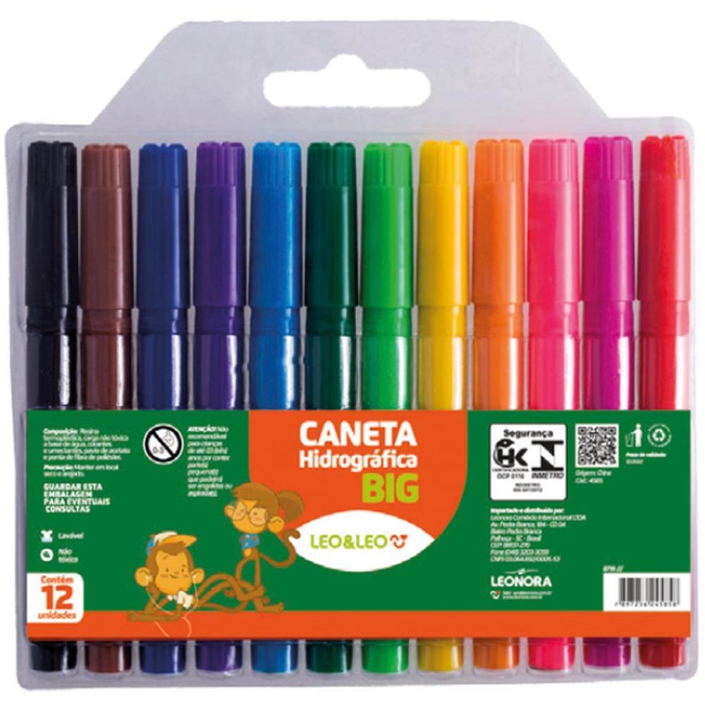 - Corpo na cor da tinta; - Formato oitavado; - Traço de 1,5mm; - Tampa antiasfixiante; - Atóxica; - 12 cores; - Lavável; - Embalagem: pacote com 12 jogos.