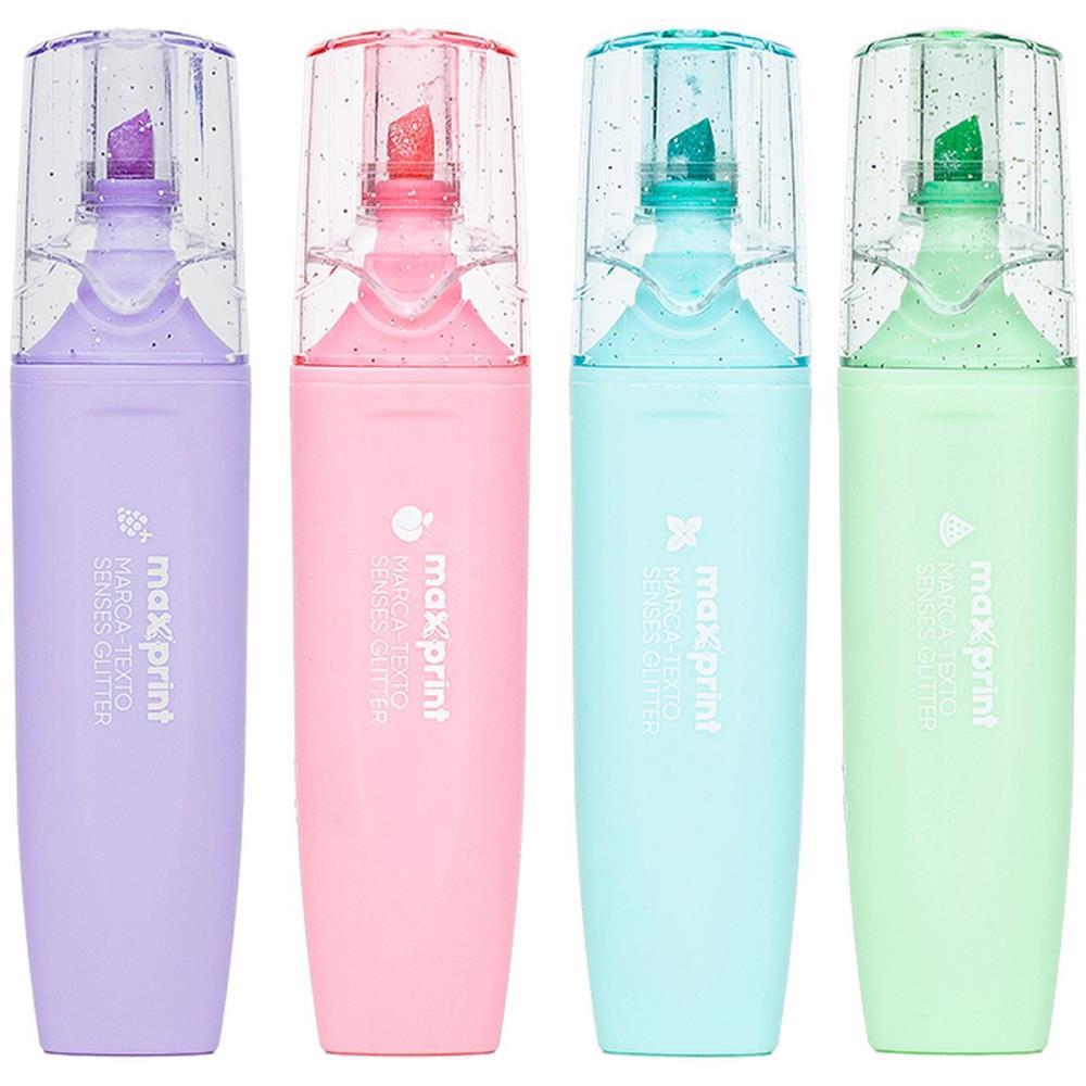 Caneta Marca Texto 4 Cores Glitter com Cheirinho Estojo