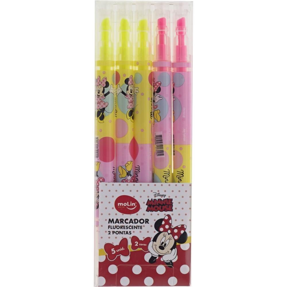 Caneta Marca Texto Minnie C/5 ROSA/AM. 2PONTAS Estojo