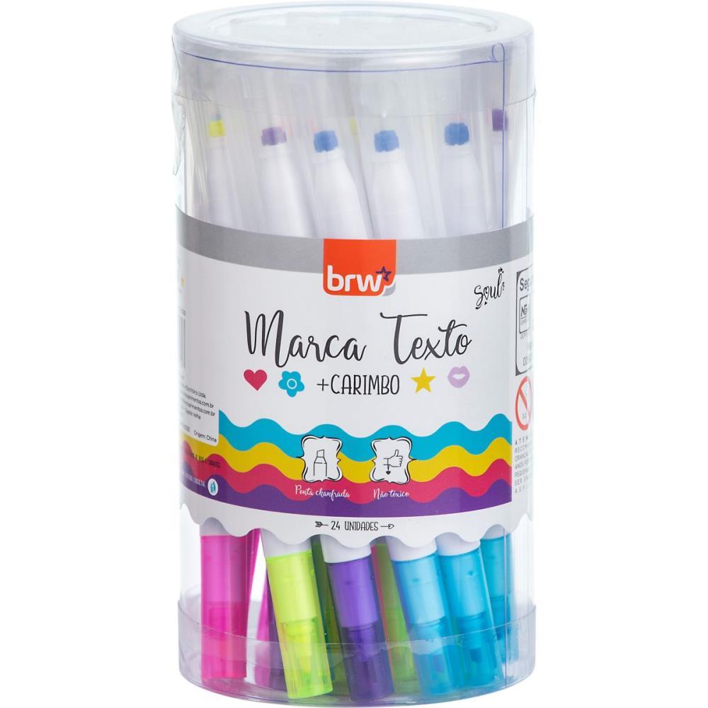 Caneta Marca Texto Ponta Dupla Com Carimbo 4 Cores - Brw