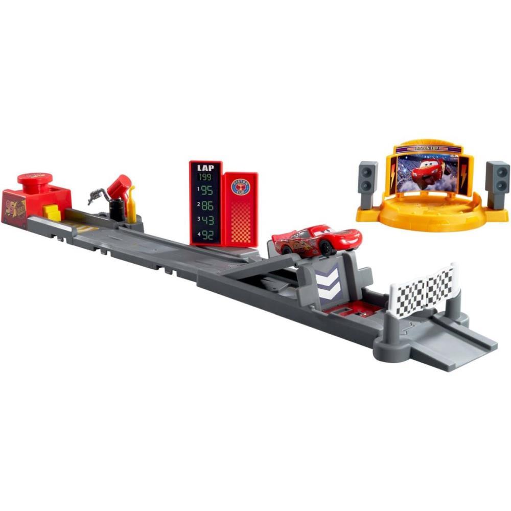Inclui o Playset Disney e Pixar Carros Pista de Salto e Acrobacias da Copa Pistao e 1 carro Relampago McQueen.