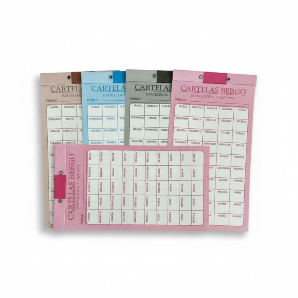 - CARTELA DE RIFA BERGO com 100 Nomes Pacote com 50 Cartelas Qualidade de Impressao. - Papel Offset 140g - QUANTIDADE: 50 Cartelas -CORES MISTAS.