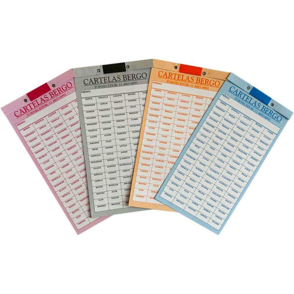CARTELAS BERGO - 200 NOMES - PACOTE COM 50 UNIDADES - CORES SAO MISTAS - IMPRESSAO NITIDA E DE QUALIDADE - PAPEL OFFSET 140G -VALIDADE INDETERMINADA