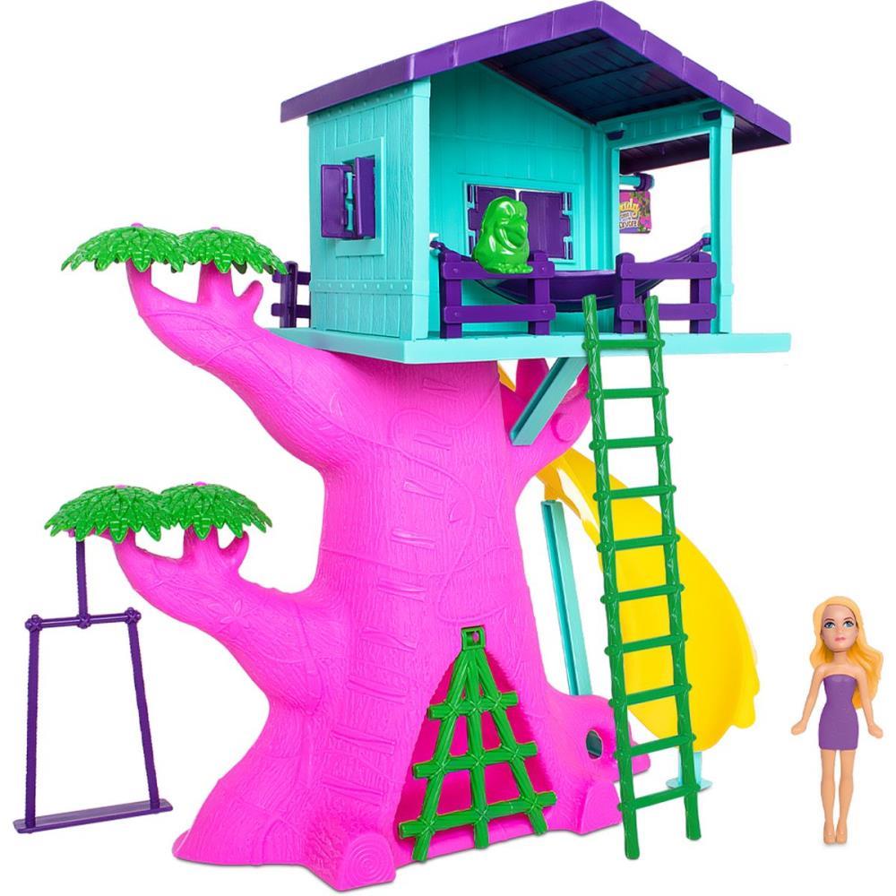 Uma linda casinha na arvore super colorida. Brinque dos dois lados da casinha. Portas e janelas se abrem. Vem com uma linda bonequinha.