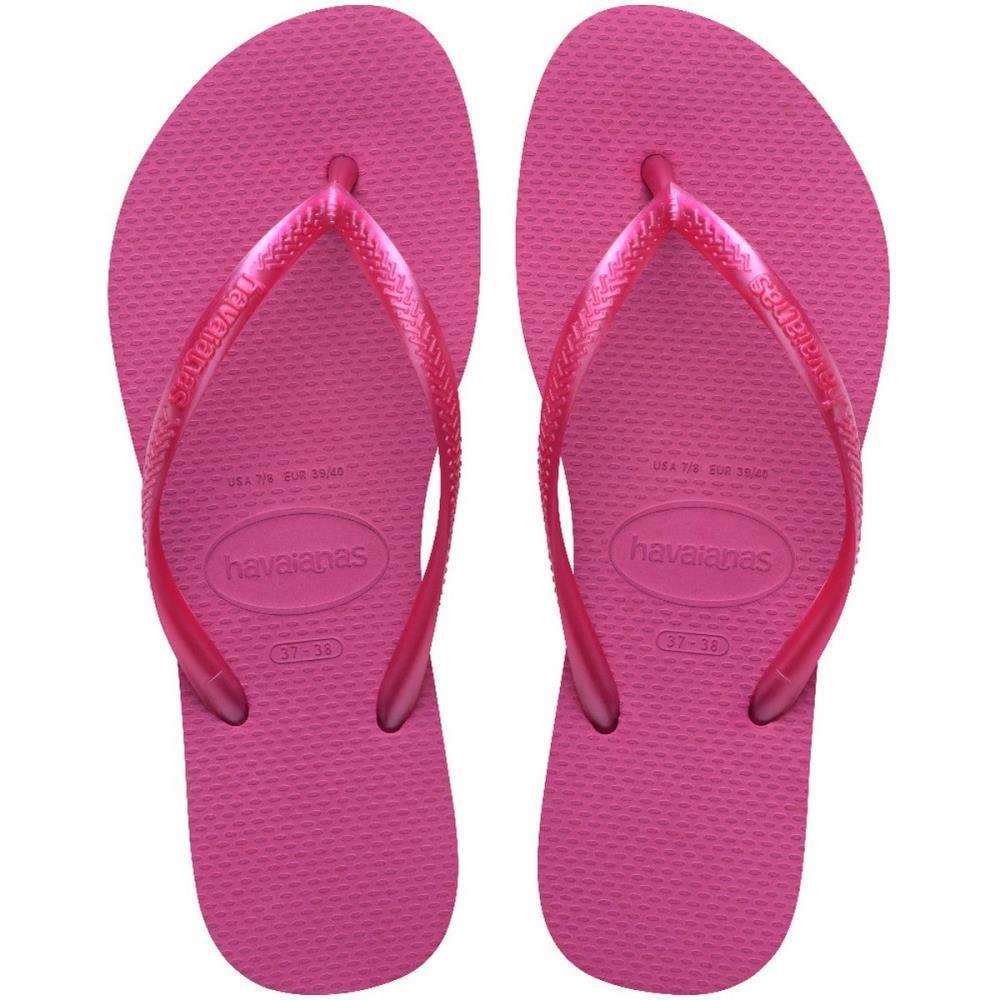 A Havaianas Slim e um classico dos nossos tempos. Com tiras e solado mais fino, ela conquistou os pes de quem gosta de um visual delicado, sem abrir mao da praticidade dos chinelos. Tao confortavel que voce ate esquece que esta usando!